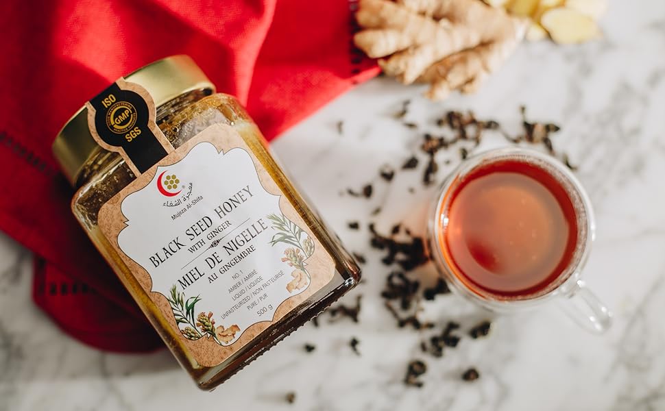Mujeza Organic Ginger Black Seed Honey 500g Natural Raw Honey Healthy Gluten Free Monofloral Organic Honey With Ginger Amazon Ca Grocery Gourmet Food